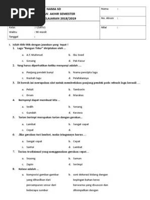 3.3 memahami gerak anggota tubuh melalui tari 1 soal 9 s/d 9 3.4 memahami bahan alam dalam berkarya 1 soal